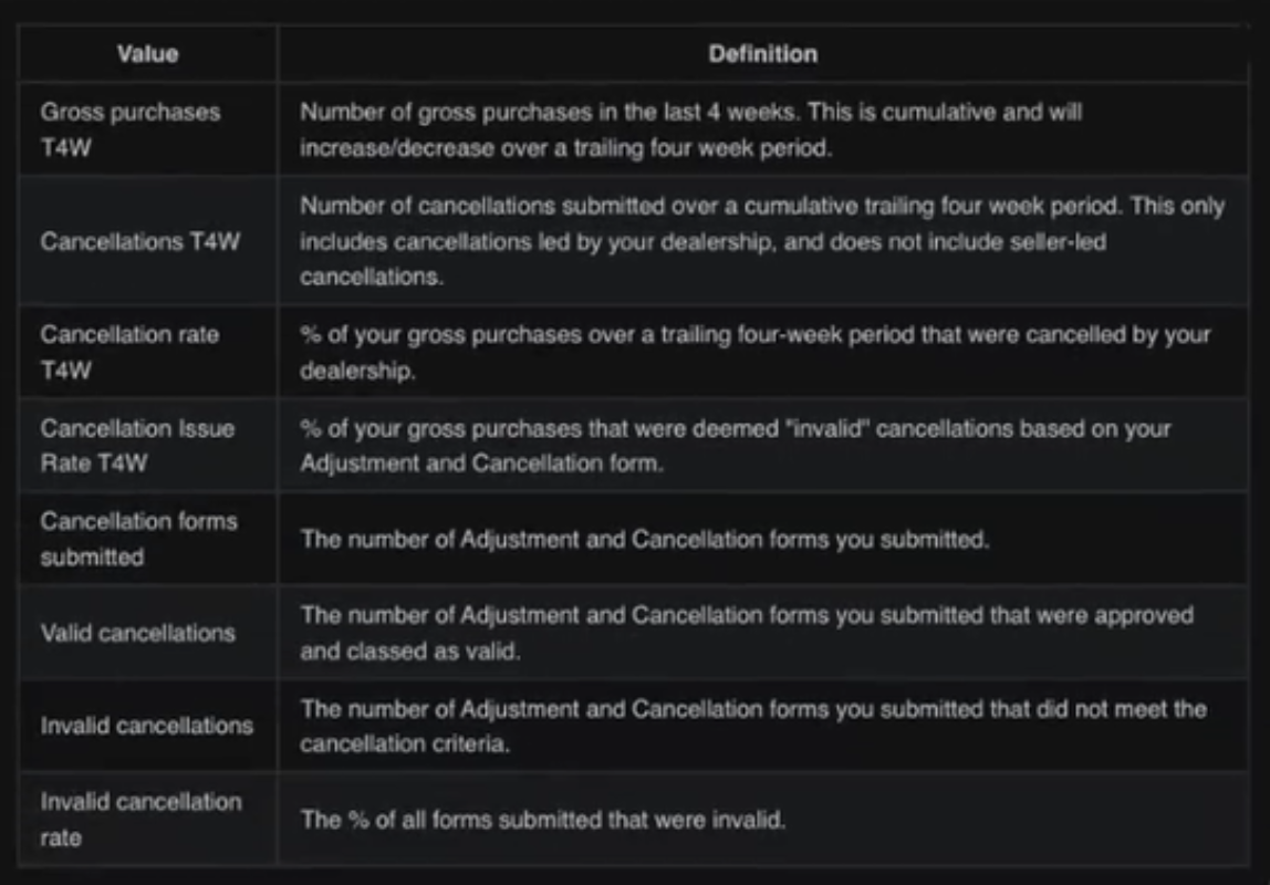 For example, if you’re not sure what Cancellations T4W means, we display that definition for you: